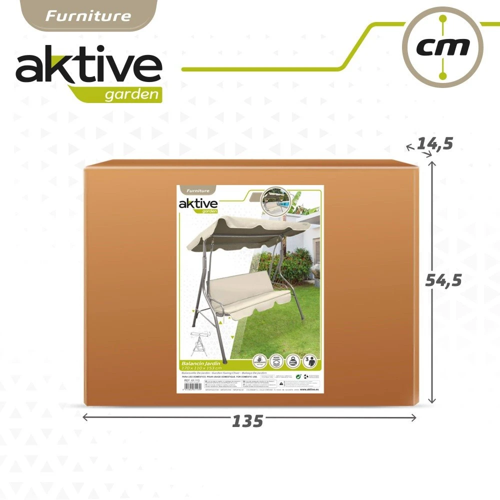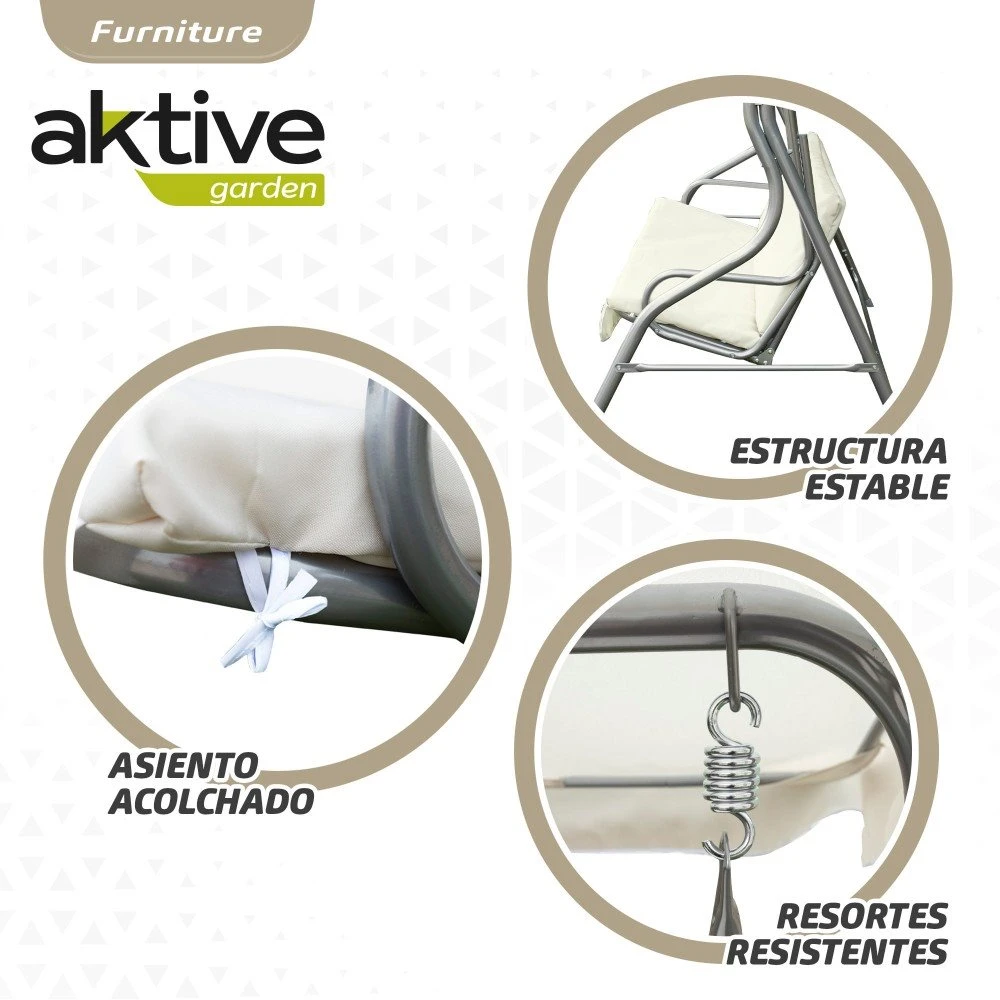 - Balancín de jardín color marfil con capacidad para 3 personas Aktive Garden