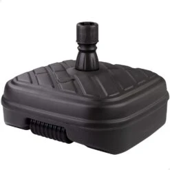 Soporte para sombrilla Aktive Garden forma cuadrada. Tiene un diseño sencillo y elegante color antracita con relieve. Mide 56 cm de ancho, 56 cm de largo y 40 cm de alto. Es perfecta sombrillas con mástil desde 33 a 48 milímetros de diámetro, ya que el tubo tiene rosca ajustable. Está fabricada de poliresina, un material ligero, resistente al agua y a los rayos del sol. Cuenta con un depósito con tapón que se puede rellenar de agua (48 l o arena (48 kg y también con rueda de 16 cm para transportarla fácilmente. Ideal para asegurar la estabilidad y sujeción de tu sombrilla frente al viento.