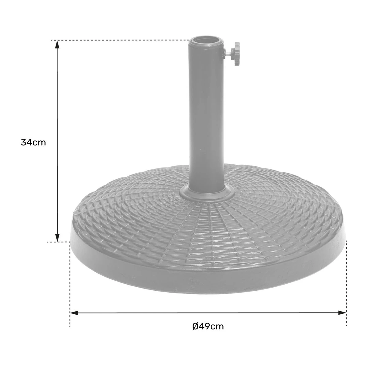 Asegure la estabilidad de su sombrilla vertical con este soporte de sombrilla con lastre de 14 kg en color negro. Su diseño de efecto ratán en la parte superior añade un toque de elegancia a su espacio exterior. Compatible con mástiles de sombrilla de 38 a 48 mm de diámetro, este soporte ofrece una solución versátil para varios tipos de sombrillas verticales. Disfrute de la sombra con total tranquilidad gracias a esta perfecta combinación de funcionalidad y estilo.