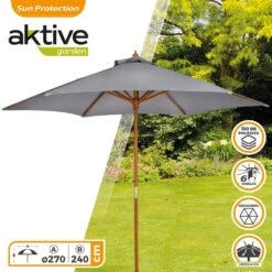 - Soporte de parasol fabricado en poliresina línea Garden de Aktive, apto para mástiles de 38 y 48 milímetros