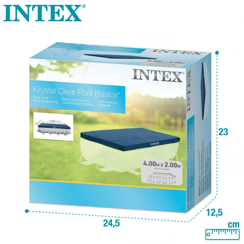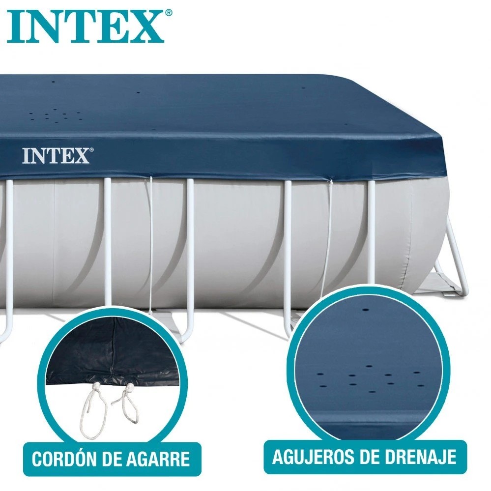 - Cobertor para piscinas desmontables INTEX de formato rectangular con medidas de 4×2 metros, compatible con la piscina INTEX 28316