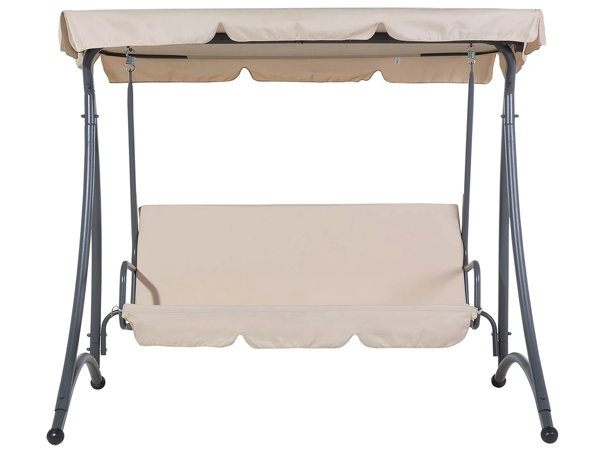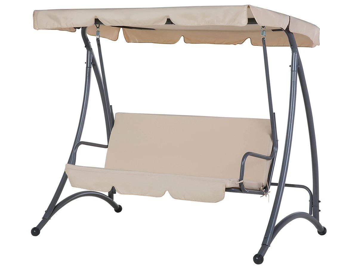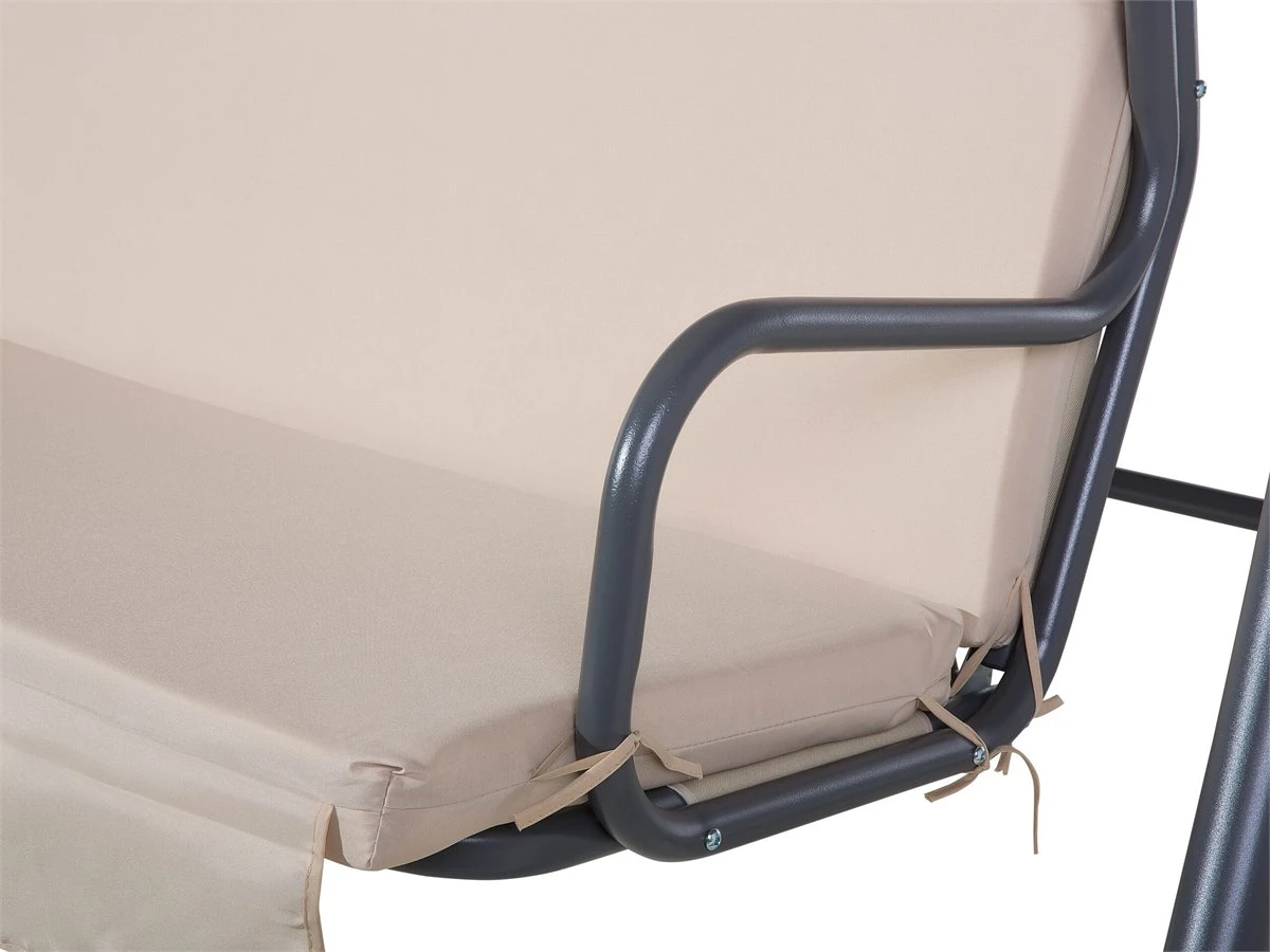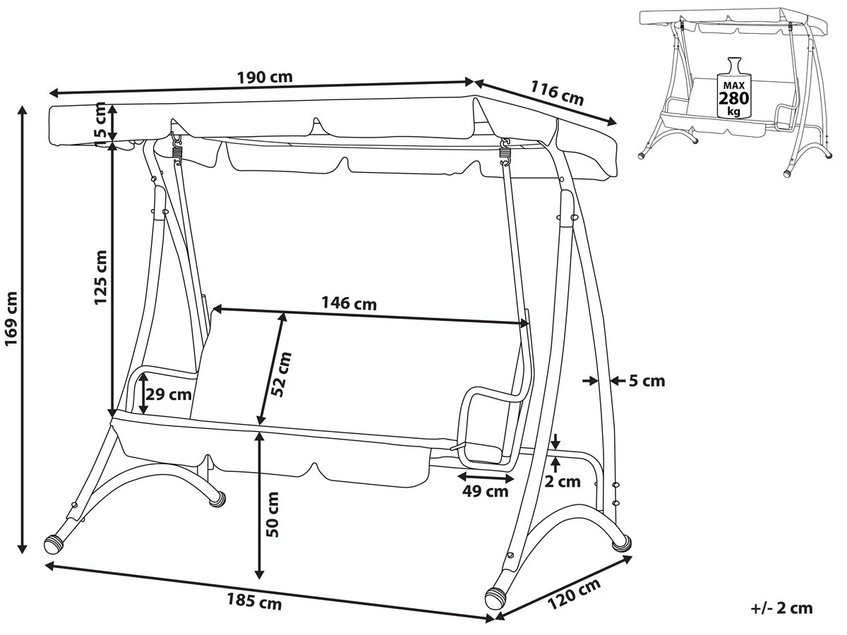 Excelente columpio de jardín. El columpio de jardín acentúa su diseño clásico con el color gris. El dosel ajustable proporciona una amplia sombra contra el sol. El asiento y el respaldo están elaborados con poliéster de alta calidad en tono gris. El marco de acero con revestimiento en polvo es elaborado a mano y es resistente a la intemperie. El columpio de jardín será su lugar favorito para relajarse durante todo el verano! Detalles: Tipo de Producto: Columpio Estilo: Moderno Color: Gris Tonalidad: Gris oscuro Tipo de material: Acero Material principal: Poliéster Material adicional: Acero Composición del Material: 100% Poliéster Acabado: Revestimiento en polvo Dimensiones: Altura del apoyabrazos: 29 cm Profundidad: 120 cm Espesor del asiento: 3 cm Altura del asiento: 50 cm Ancho: 190 cm Altura: 169 cm Superficie del asiento: 146×49 cm Peso: 36 kg Capacidad de peso: 280 kg La oferta incluye: 1 x Columpio Ventajas: Altura del toldo ajustable, Las tiras ofrecen una fijación segura, Perfecto para todo tipo de exterior, Construcción muy estable, Materiales de la más alta calidad Información de montaje: Requiere montaje completo. Más de 60 min. Texto de resistencia: Gracias a su resistencia al agua, puedes utilizar el producto al aire libre y dejarlo a la intemperie durante lluvias ligeras. Si no es posible guardarlo en un lugar cerrado y protegido, recomendamos utilizar una funda protectora. La exposición prolongada a la humedad puede provocar daños en el mueble. Resistencia: Agua ligera / humedad Consejos de mantenimiento: Poliéster: 1.Aspire con un accesorio adecuado 2.Limpiar con champú seco y una esponja húmeda o un limpiador suave 3.Cuando no esté en uso, manténgalo en un lugar limpio y seco para protegerlo de las condiciones atmosféricas. Acero: 1.Quite las tapas protectoras con regularidad para que salga todo el líquido, déjelas secar y utilice un spray anticorrosión si es necesario 2.Limpiar con detergentes suaves 3.Los muebles de acero y sus elementos no deben exponerse al agua. De lo contrario, existe la posibilidad de que el agua oxidada salga de las tuberías del marco 4.Cuando no estén en uso, los muebles deben guardarse en el interior o bajo una cubierta protectora 5.Para aumentar la durabilidad del artículo, manténgalo seco y recuerde la limpieza regular 6.Cualquier daño a la capa de pintura exterior debe protegerse de la humedad 7.Para garantizar la protección contra la corrosión, evite los limpiadores alcalinos o ácidos. Después de limpiar, secar bien.