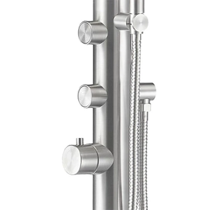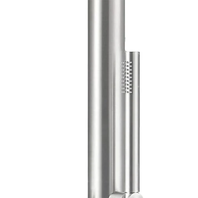 Estilo italiano Sined presenta la nueva línea de duchas para jardín y piscina y la nueva línea de mobiliario de exterior. Alta calidad, cuidado del diseño, atención al más mínimo detalle y singularidad, que caracterizan todas las excelencias italianas tan apreciadas en el mundo. Aunque se fabrica industrialmente, todo es creado por un estudio italiano y bajo estrictas directrices de la cadena de suministro, como el control de las distintas muestras probadas en Italia, hasta el producto completo y su certificación. El diseño interno fue seguido por un equipo de especialistas italianos, que analizaron cada uno de los componentes, considerando posibles problemas y estudiando soluciones para evitarlos. ¡Todo para definir los productos de alta gama! Todo está hecho con materiales de la más alta calidad. Cada uno de los componentes ha sido seleccionado con extremo cuidado. Los productos se comercializan con una serie de accesorios útiles, por no decir imprescindibles, que normalmente se pagan por separado. La producción física se confió entonces a una fábrica asiática con un gran know-how y reconocida internacionalmente por su control de calidad extremadamente preciso. Las instalaciones de producción y la maquinaria de última generación que se utiliza son tan caras que sólo las grandes economías de escala pueden sostenerlas. No encontrará en el mercado las mismas características técnicas y accesorios que SINED ofrece a sus clientes. La ducha exterior de acero inoxidable de alta calidad. Con ducha de mano para exteriores el modelo BUDONI es una ducha en acero inoxidable satinado Aisi Inox 316L con entrada de agua caliente y fría H 2210 mm. Es ideal para uso comercial y privado, para piscinas exteriores e interiores, para jardines o para el baño de casa. – Mezclador doble, permite tener agua caliente desde el cabezal de la ducha y desde la ducha de mano. – Ducha de mano – Conexiones de agua ocultas en la base. – Grifos de acero inoxidable Aisi 316L. – Conexión de agua por la parte inferior con acoples rápidos.- Manguera de ducha manual de acero inoxidable AISI 304 El acero utilizado es Aisi Inox 316L de alta calidad, también conocido como acero marino, que es mejor que el AISI 316. Se diferencia del acero inoxidable AISI 316 en que contiene menos carbono, la L significa «low carbon». Esto hace que los aceros de esta serie sean especialmente resistentes a la corrosión (sobre todo a las picaduras incluso en entornos especialmente reductores y altamente salinos, garantizando una excelente resistencia a la corrosión. A diferencia de las duchas exteriores con calefacción solar, no tiene que preocuparse de colocar esta ducha bajo la luz directa del sol. La única limitación es su elección. Colocación Se recomienda instalar la ducha sobre un soporte sólido, perfectamente plano y nivelado, capaz de soportar el peso de la ducha y evitar su caída, como un suelo de hormigón, piedra, base de hormigón, etc. La fijación se realiza con los tacos suministrados y el C-BOX suministrado. Algunos consejos Las duchas de acero inoxidable son especialmente sensibles a las impurezas y a la cal y, si se instalan en el exterior, a las bajas temperaturas durante el invierno. – Se recomienda purgar el sistema antes de conectar las tuberías de agua para evitar que la suciedad y las impurezas entren en la ducha y provoquen su mal funcionamiento. – Para evitar la formación de cal, se recomienda encarecidamente instalar un filtro especial en las entradas de agua y limpiar periódicamente la ducha, las boquillas y el cabezal de la ducha. Nuestro sistema de fijación rápida C-BOX facilita especialmente el montaje y desmontaje. La C-BOX está equipada con una tapa especial para proteger las entradas de agua de la suciedad y evitar posibles atascos en las tuberías cuando se desmonta la ducha. – Antes del periodo invernal o en caso de no utilización pr