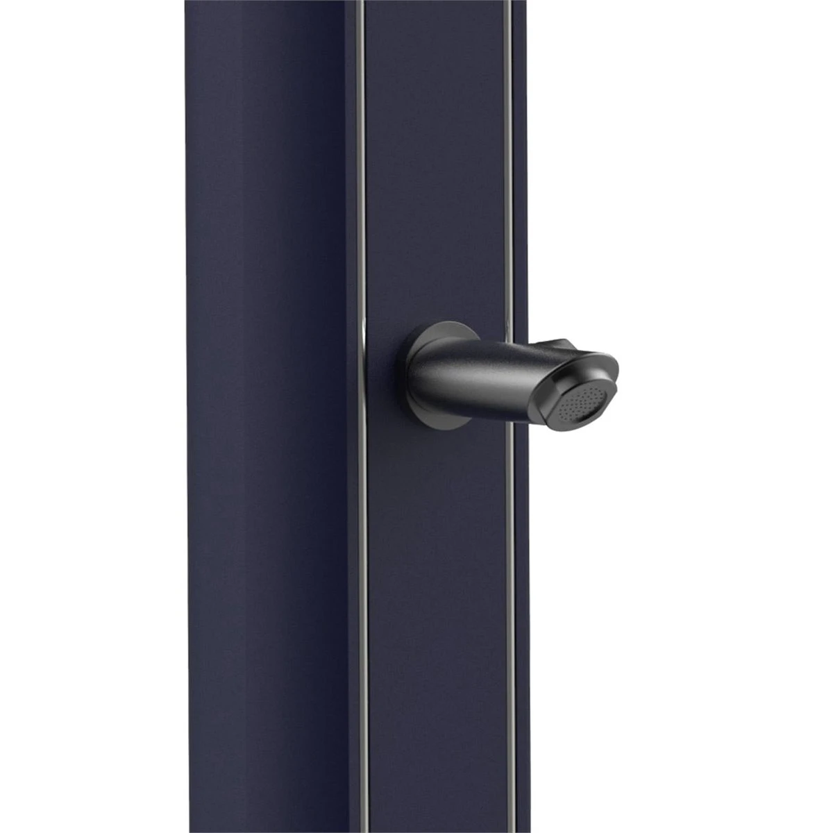 Si quiere agua muy caliente, elija entre nuestras duchas solares Sined las de color negro, gris, azul y rojo. Agua caliente del sol, totalmente solar, sin sorpresas en la factura de la luz . La ducha solar de aluminio azul EMI de SINED, está dotada de un depósito de 25 litros que la hace apta para su uso en lugares públicos (hoteles-campings-pueblos turísticos-establecimientos de baño y para uso privado. También es excelente para amueblar espacios exteriores. Fabricado en aluminio, para garantizar unos colores brillantes y duraderos. Equipado de serie con un cuerpo curvo, mezclador de agua caliente-fría y lavabo de pie. Recuerda que cuanto más oscuro sea el color, más te llegará el calor del sol. Colocar siempre en la zona más soleada durante el día. El chorro de la alcachofa de la ducha solar es mucho más suave que el chorro de una ducha tradicional o del grifo, desde el lavapiés sólo sale agua fría. Altura 226 cm, dimensiones de la base 15,7×15,4 cm Filtro anticalcáreo y práctica bolsa protectora, de tela 190, para su almacenamiento, de regalo. Ideal para jardines, piscinas y playas. La ducha se somete a una prueba de presión individual por inmersión en una bañera de agua, tras la cual se seca, se vuelve a comprobar y se embala cuidadosamente con una protección personalizada. Completa con – Todo lo que necesita para el montaje – Grifo mezclador – Grifo de lavado de pies – Depósito de agua 25 litros – Altura 226 cm – Dimensiones de la base 15,7×15,4 cm – Ducha redonda de 15 cm de diámetro en latón negro mate – Accesorios de latón NEGRO MATE – Filtro anticalcáreo – Cartucho mezclador de alta calidad – Tapones de fijación incluidos – Fijación con casquillos especiales de protección de nylon – Presión de agua recomendada 3,5 bar – Mangueras internas Braid 15 kg de presión – Bolsa de protección, de tela 190, para guardar el producto Algunos consejos La fuga de agua de la alcachofa de la ducha después de cerrar el grifo no es un defecto, sino un requisito técnico. Una ducha solar no es un sistema cerrado. Si hay demanda de agua caliente, el agua fría entra en el depósito desde abajo a través de la válvula, expulsando el agua caliente que ya está en la parte superior del depósito. Todo el cuerpo de la ducha se llena de agua y actúa como calefacción solar. La presión creada por la calefacción puede escapar de la alcachofa de la ducha. Desmontaje al final de la temporada Durante el invierno, la ducha debe estar COMPLETAMENTE vacía de su contenido de agua. Además, la ducha debe desmontarse y guardarse en un lugar seco durante el invierno. El incumplimiento de esta advertencia puede provocar daños por congelación en el producto. Los daños por heladas no están cubiertos por la garantía. 1 Cierre la ducha y retire la manguera de jardín. 2 Para vaciar la ducha, gire el mezclador de nuevo a la posición «HOT» (aprox. 2 minutos y abra el tapón de vaciado. 3 Retire los tornillos de fijación de la base y vacíe el agua restante del fondo de la ducha inclinándola (¡es absolutamente necesario!. Limpieza Utilice productos de limpieza disponibles en el mercado para la limpieza. No utilice productos de limpieza que contengan disolventes, productos de limpieza abrasivos o esponjas duras, cepillos, etc.