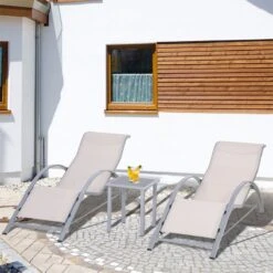 Juego De 2 Tumbonas GALAPAGOS De Textileno Y Aluminio Gris Antracita