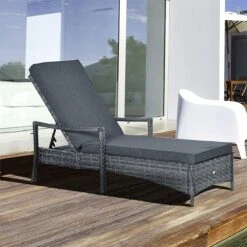 Outsunny Tumbona Mecedora De Exterior Con Respaldo Y Reposapiés Regulables 64x69x108 Cm Gris