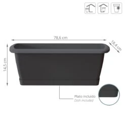 Prosperplast Maceta Urbi Case Beton Effect , Con Depósito, Dimensiones (Mm) 580X180X498, Color Crema