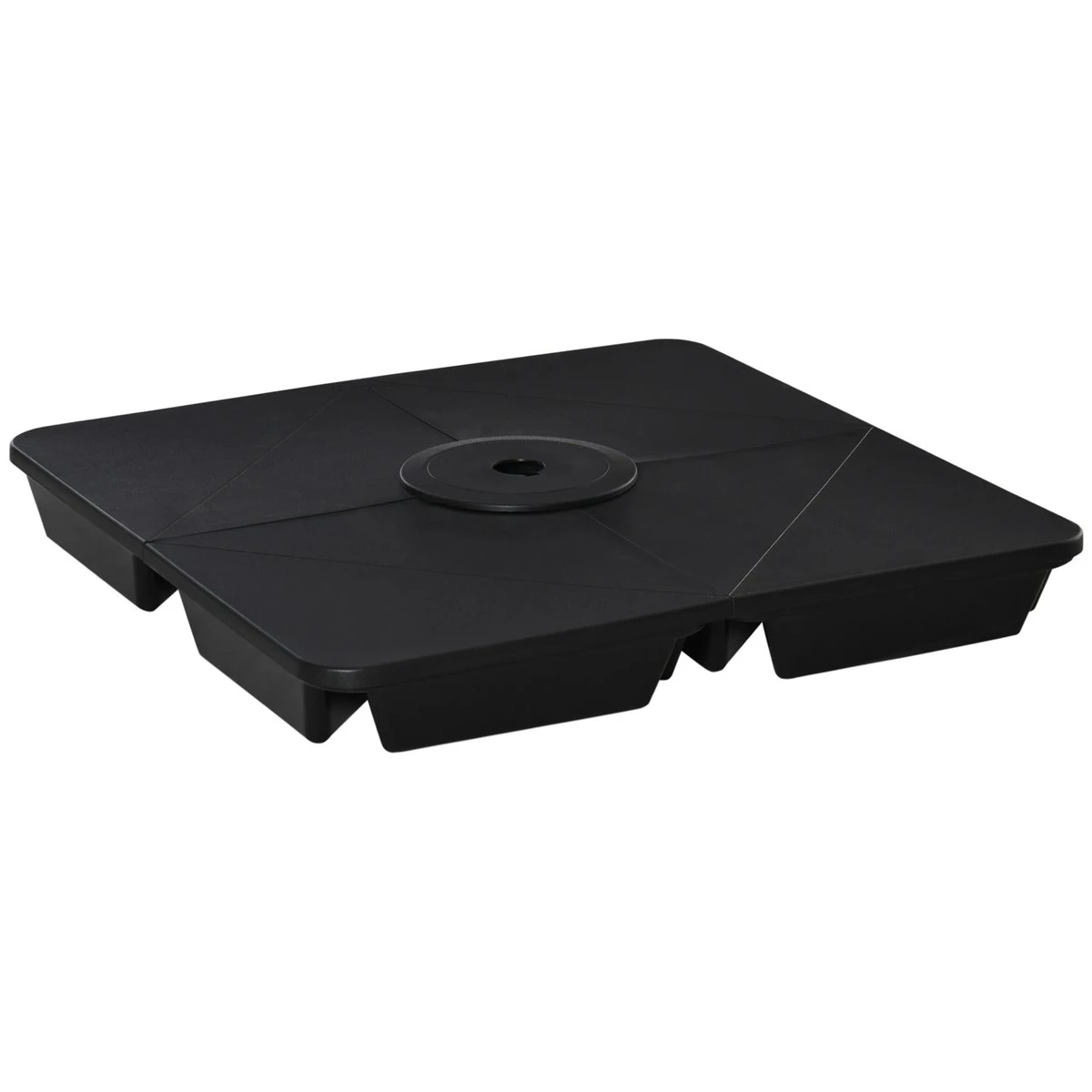 Si quiere que tu sombrilla excéntrica de base cruzada esté siempre firme, estable y segura, esta base de Outsunny es perfecta para ti. Fabricada en plástico PP, es resistente e ideal para un uso prolongado. La base se compone de 4 piezas que se encajan fácilmente y cada una puede contener hasta 20 kg de arena, aportando un peso de 80 kg en total. ¡Simplemente combina esta base con tu sombrilla y crea un espacio sombreado perfecto en tu jardín!