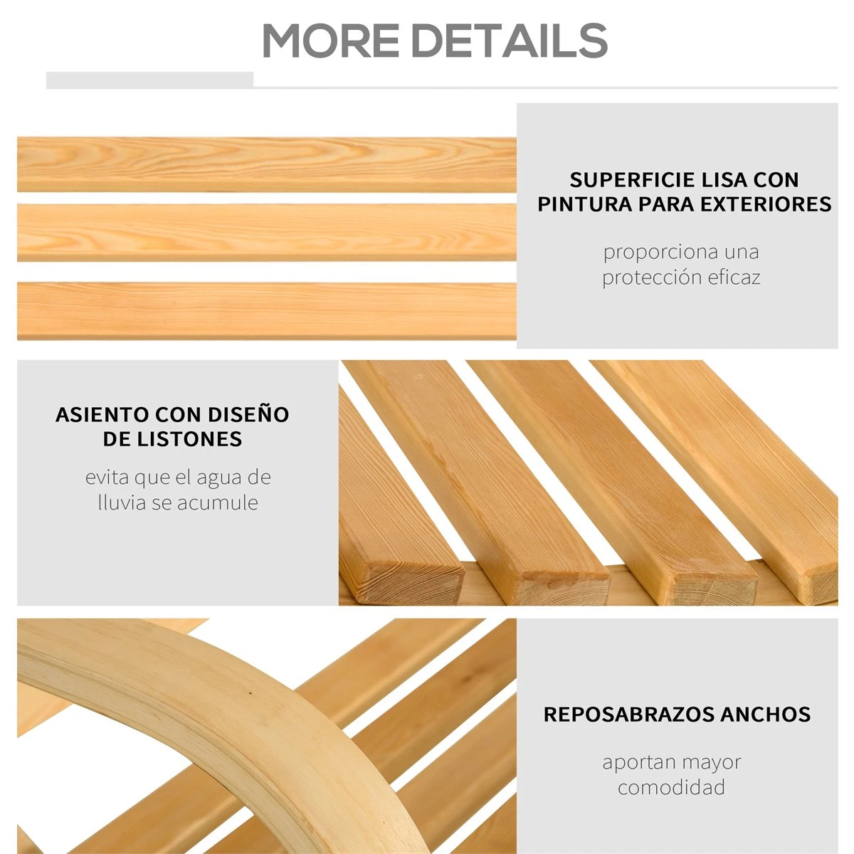 - – Fabricado en madera maciza con superficie tratada, resistente a la intemperie, ideal para un uso prolongado