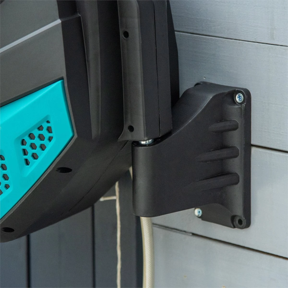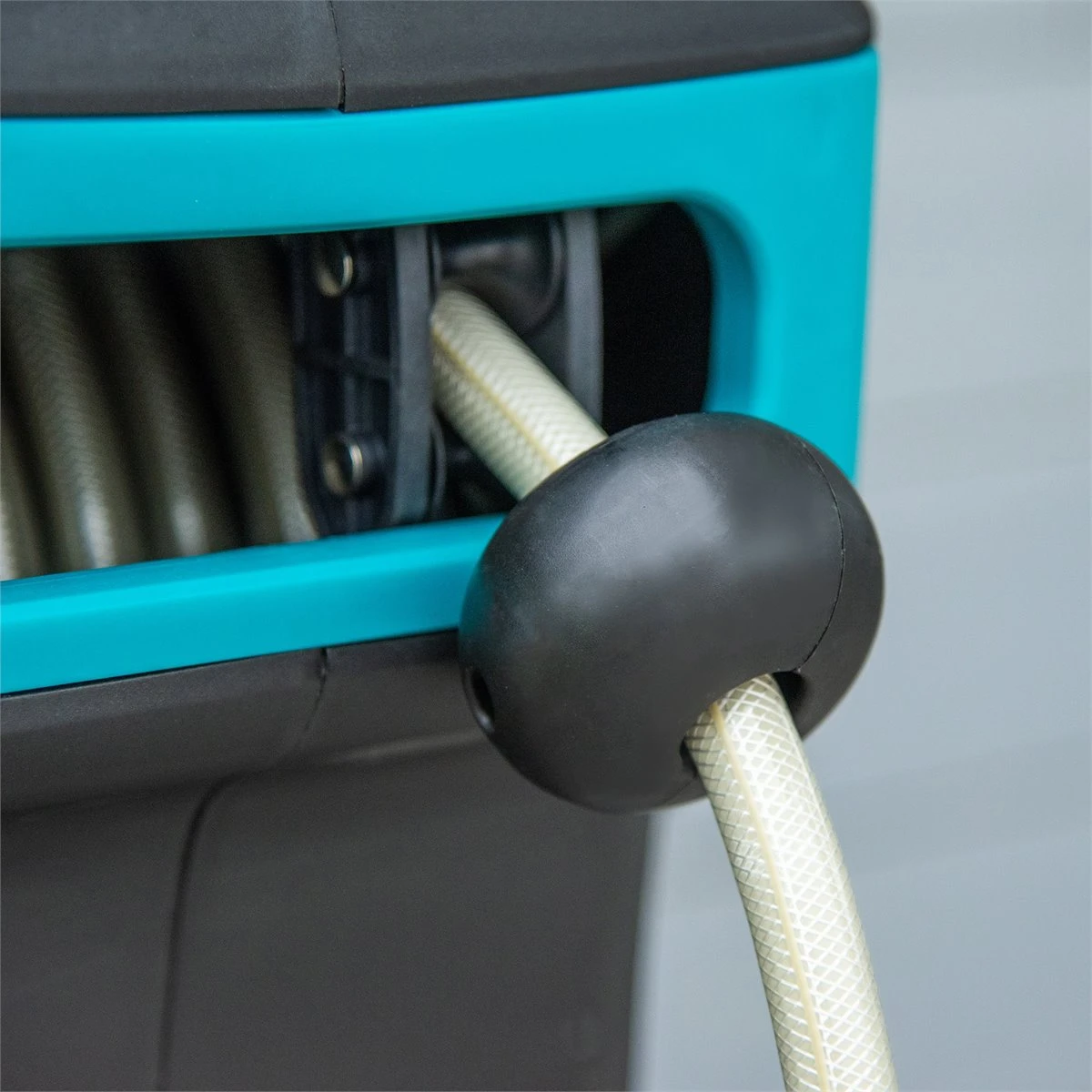 Si quieres una manguera para tu patio o jardín y no quieres estar pendiente de si se te tuerce, enrolla o tener que enrollarla manualmente cuando terminas, este carrete con manguera de Outsunny es lo que necesitas. Cuenta con una manguera de 20 metros que se enrolla automáticamente con bloqueo para fijarla en cualquier posición. El cabezal cuenta con 7 posiciones distintas de riego, ideal para regar tus plantas, césped, limpiar tu patio, coche, balcón y más. Características – La manguera de agua de 20 m de longitud ofrece una gran amplitud de trabajo y libertad de movimiento – Carrete de polipropileno de alta calidad, resistente a impactos y a la intemperie – Sistema de enrollado automático para mayor durabilidad y comodidad de uso – Siete modos diferentes de riego y manguera con función de bloqueo – Excelente para regar jardines, césped, patios, limpieza de vehículos y más – Incluye soporte de montaje giratorio de 180 grados, tornillos y tacos de pared – Se requiere montaje – NOTA: Antes de recoger la manguera dentro del carrete, asegúrese de que no gotee. Guarde la manguera y el carrete en el interior durante los meses de invierno para prolongar su vida útil Especificaciones – Color: negro y verde – Material: plástico PP (carrete y PVC (manguera – Medidas totales: 52x43x24 cm (LxANxAL – Longitud de la manguera de agua: 20 m – Diámetro de la manguera de agua: 11 mm (interior, 15 mm (exterior – Longitud de la manguera de conexión: 1,95 m – Presión de trabajo: 10 bar – Presión de rotura: 30 bar – Temperatura de trabajo: -5-45℃ – Referencia: 845-495