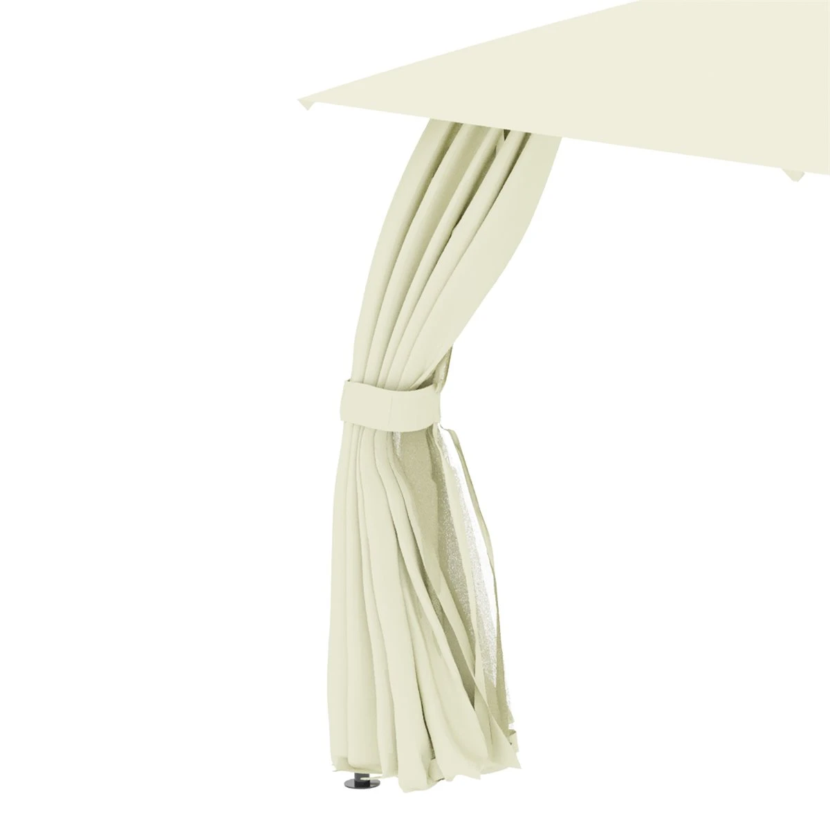 - – TECHO DOBLE: Este pabellón de jardín de dos niveles tiene un revestimiento de PA que protege del sol y proporciona sombra en los días soleados. El doble techo favorece la ventilación, garantiza una mejor resistencia al viento y reduce la sensación de calor – ESTRUCTURA DE ACERO: Este gazebo grande está fabricado con una estructura de acero para darle solidez y resistencia. Se deben insertar 8 clavijas en los pies y profundamente en el suelo para aumentar la estabilidad del producto – PAREDES LATERALES: Las cortinas de poliéster desmontables del cenador grande de 395×295 cm pueden ofrecerte la privacidad adecuada para disfrutar de tu tiempo libre. Puedes fijar las paredes a la estructura del cenador gracias a las prácticas correas de velcro – MÚLTIPLES USOS: Alto y grande, este cenador para exteriores es lo suficientemente espacioso para que puedas reunirte con tus invitados sin problemas. Adecuado para instalarlo en tu patio, jardín, cerca de la piscina o cualquier otro espacio exterior – MEDIDAS TOTALES: 395x295x270 cm (LxANxAL. Altura del alero: 190 cm. Se requiere montaje. NOTA: No se recomienda su uso en condiciones climáticas extremas, como tormentas o fuertes vientos/lluvia