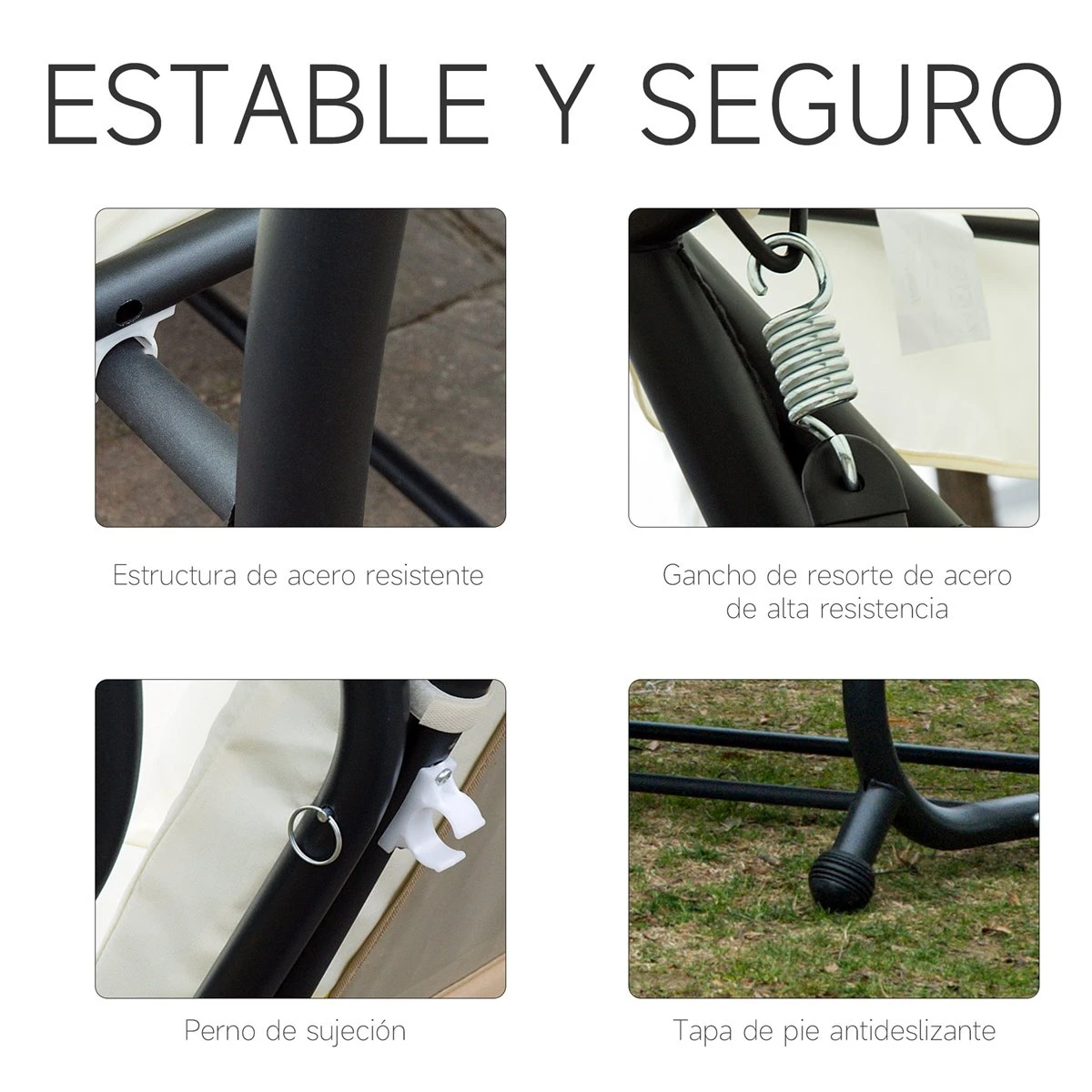Disfruta de este cómodo y práctico columpio balancín en tu jardín o terraza. Tiene un espacioso asiento acolchado de 3 plazas y un techo regulable que te permite protegerte del sol. El respaldo es reclinable de modo que puedes tumbarte y disfrutar de una agradable siesta. Está hecho de materiales de alta calidad, duraderos y resistentes a la intemperie. Este columpio balancín es ideal para pasarlo bien en compañía de amigos y familiares.
