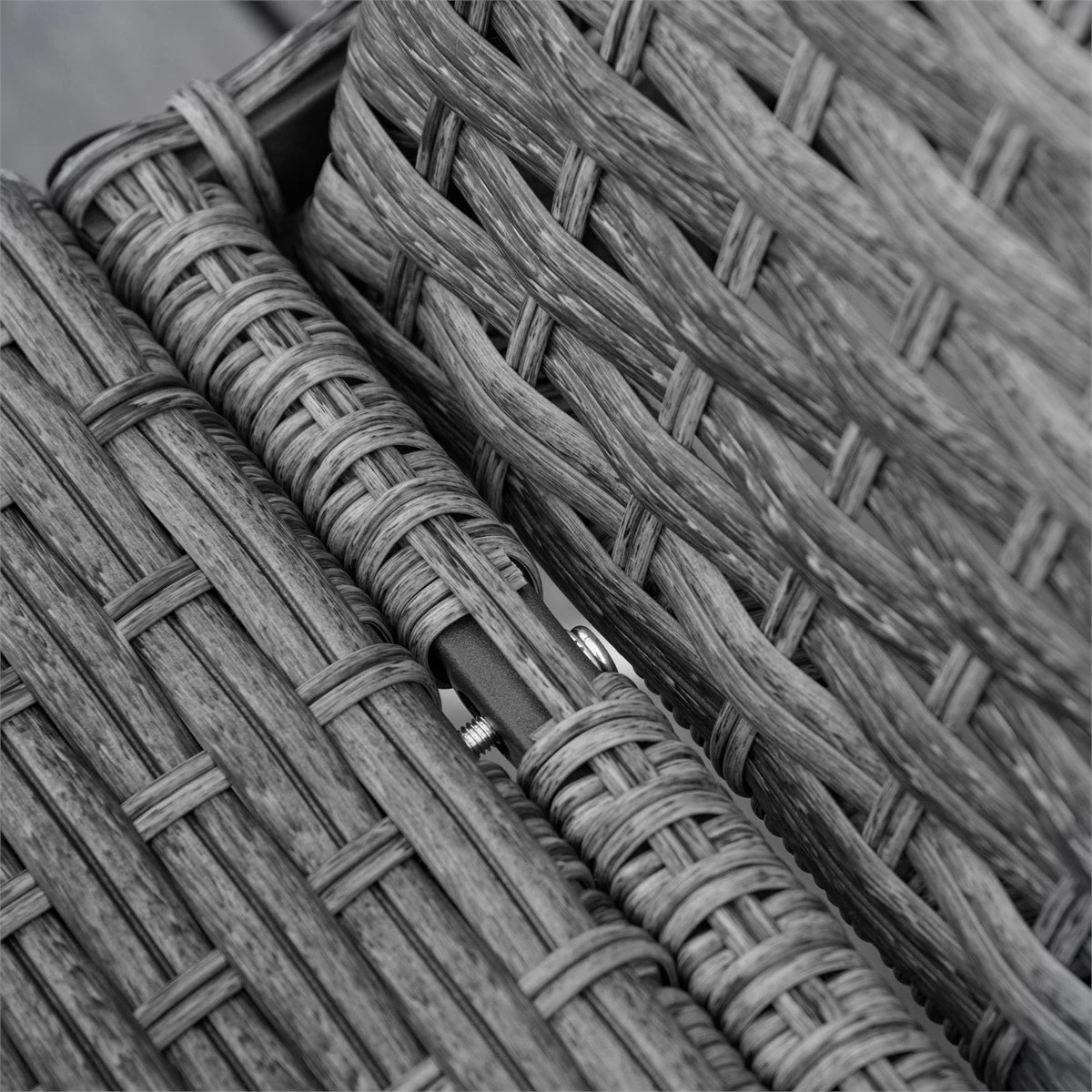 Este conjunto de 2 tumbonas para exterior de Outsuuny tiene una estructura de metal galvanizado cubierta con poliratán, con gran resistencia a la intemperie y a los rayos UV. Su respaldo tiene 4 posiciones ajustables para que puedas sentarte a leer un libro o tumbarte a tomar el sol. Viene con un cojín de cuerpo entero para mayor comodidad y tiene apoyabrazos en los laterales para aliviar la tensión de hombros y espalda. La mejor opción para relajarte al aire libre y descansar. Características – Apta para uso en exteriores, perfecto para jardín, patio, junto a la piscina, etc. – Tumbona con estructura metálica robusta y resistente a la intemperie – Fabricado con rattan PE, duradero y resistente a los rayos UV – Las 4 posiciones reclinables del respaldo permiten sentarte, tumbarte o acostarte – Con apoyabrazos laterales, para mayor alivio de tensión en espalda y hombros – Incluye cojín acolchado de cuerpo entero para mayor comodidad – La funda del cojín con cremallera se puede quitar y lavar – Requiere montaje Especificaciones – Color: gris (tumbona, gris (cojín – Material: metal galvanizado, ratán PE y poliéster – Medidas totales: 192×62,5×52,5 cm (LxANxAL – Medidas del asiento: 60,5×107 cm (LxAN – Altura del asiento: 30,5 cm – Altura ajustable en 4 niveles: 58 cm, 70 cm, 82 cm y 95 cm – Carga máxima: 160 kg – Certificaciones: EN12520 – Referencia: 862-P013