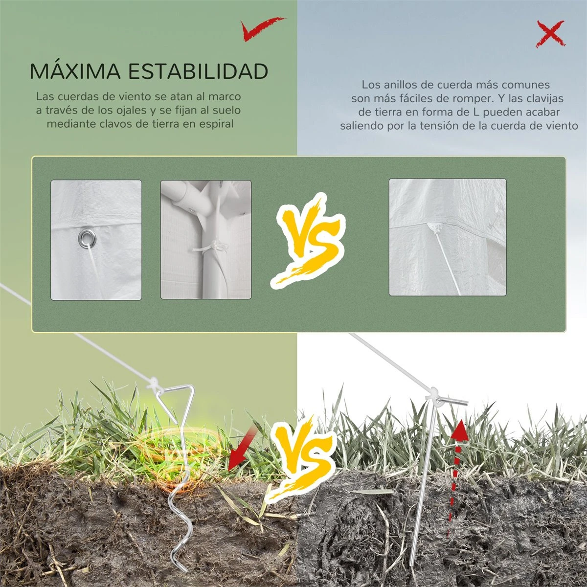 - – VERSÁTIL: Carpa de jardín con forma de catedral la cual ofrece un gran espacio interior, ideal para patio, jardín, terraza y para una variedad de actividades al aire libre como reuniones familiares, eventos de empresas, ferias, etc. – MONTAJE FÁCIL: Este cenador está especialmente diseñado para ofrecer una fácil instalación gracias a su estructura tubular mediante conectores. Para ahorrar tiempo, esfuerzo y configurar en pocos minutos. Se requieren 2 personas para su instalación – CON MOSQUITERAS: Esta carpa cuenta con paredes laterales de malla mosquitera. Los pequeños agujeros de la malla impiden que los insectos entren al interior a la vez que proporcionan una buena ventilación. 2 de los laterales cuentan con una puerta con cremallera – RESISTENTE: La estructura tubular de acero con recubrimiento en polvo garantiza resistencia a la intemperie y a la corrosión, además de gran firmeza y estabilidad. La cubierta de este gazebo es de polietileno y cuenta con una gran protección frente a los rayos UV. No se puede usar al aire libre en condiciones climáticas extremas o vientos fuertes – MEDIDAS TOTALES: 595x295x255 cm (LxANxAL; Altura del alero: 200 cm