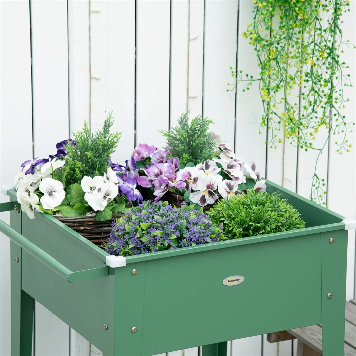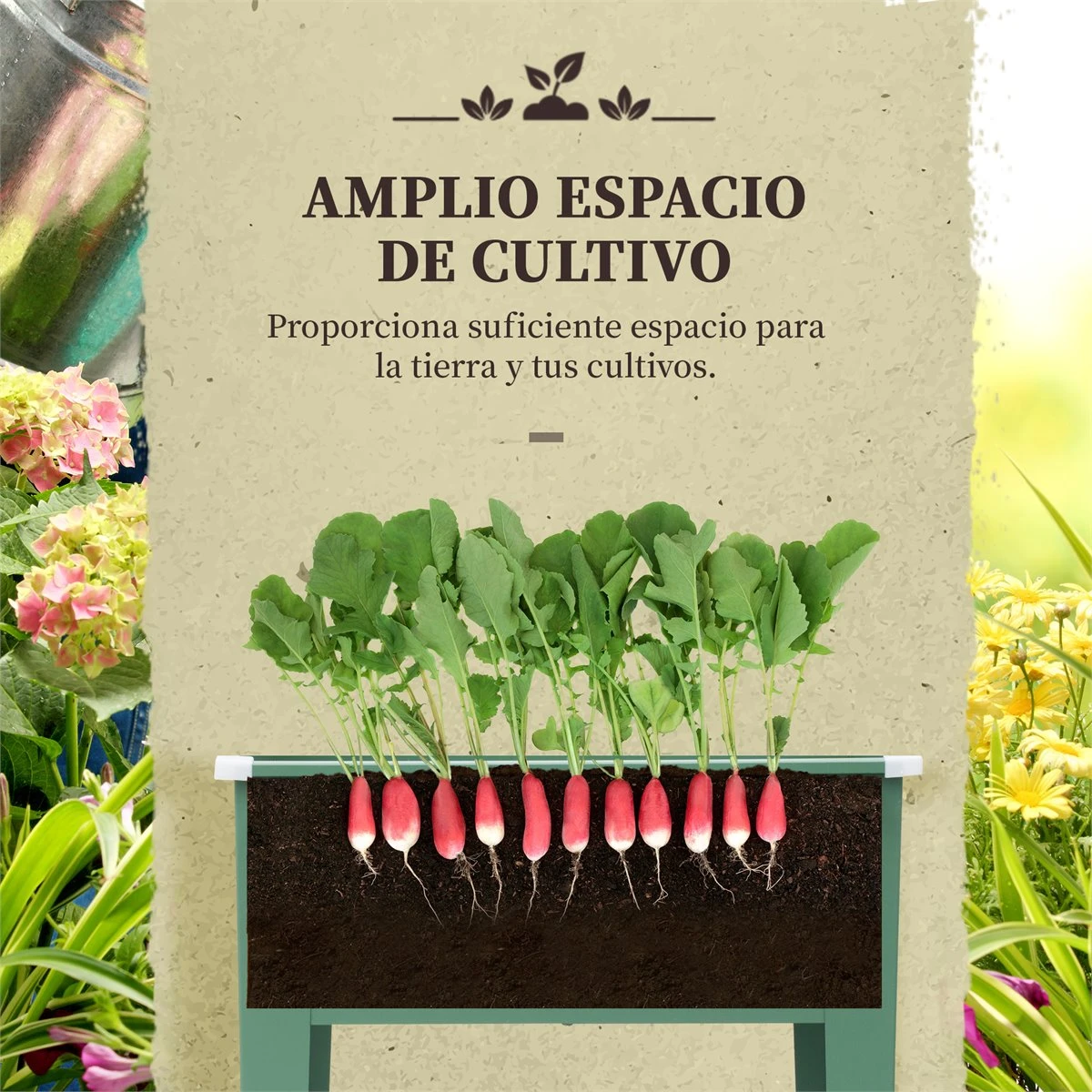 ¿Te aquejas de dolor de espalda y te encantas las plantas? Entonces esta jardinera elevada de Outsunny con ruedas es ideal para ti. Decorativa y a la vez pensada para facilitar su uso y transporte. Es ideal para evitar malas posturas. Tiene un estante inferior para poder tener todas las herramientas a mano y ruedas y un asa lateral para mover sin esfuerzo. Y no debes preocuparte por el exceso de agua y transpirabilidad de tus plantas, ya que tiene un orificio de drenaje en la parte inferior. Características: Jardinera elevada que evita malas posturas y proporciona mayor comodidad de uso Amplio espacio para tener tus plantas, flores, etc. Estante inferior para colocar herramientas, macetas, y más, con pequeñas perforaciones para evitar la acumulación de agua Orificio para drenar el exceso de agua Con 2 ruedas y asa lateral, para mover con facilidad Con 4 protectores de esquina para proteger de lesiones y golpes accidentales Fabricado con acero galvanizado resistente a la oxidación con superficie tratada especial para mayor estabilidad Ideal para usar en tu patio, terraza, jardín y más Se requiere montaje Especificaciones: Color: verde Material: acero galvanizado Medidas totales: 64x55x79 cm (LxANxAL Medidas del área de plantación: 52x52x21 cm (LxANxAL Medidas del estante inferior: 52x52x20 cm (LxANxAL Carga máxima: 50 kg (área de plantación, 30 kg (estante Referencia: 845-845V00GN
