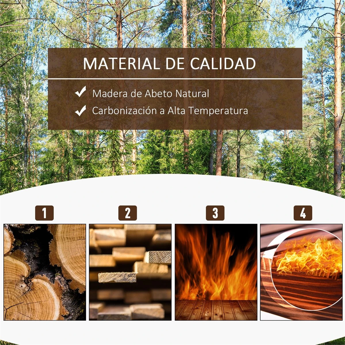 - – Estructura de madera maciza resistente, carbonizada a alta temperatura