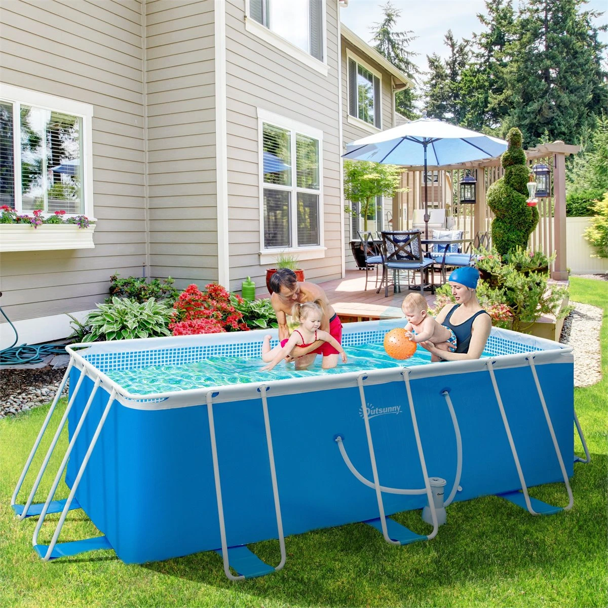 Olvídate de pasar calor este verano gracias a las piscinas de Outsunny. Combate el bochornoso sol y diviértete en compañía de tu familia o amigos. Esta piscina incluye una depuradora de filtro de nano bolas, para que puedas tener tu agua limpia de impurezas. Y están hechas con marco tubular de acero resistente y paredes reforzadas de PVC de alta densidad, para resistir a los rayos UV y a los impactos que puedan producirse mientras te diviertes en ellas ¡Disfruta del verano con Outsunny!