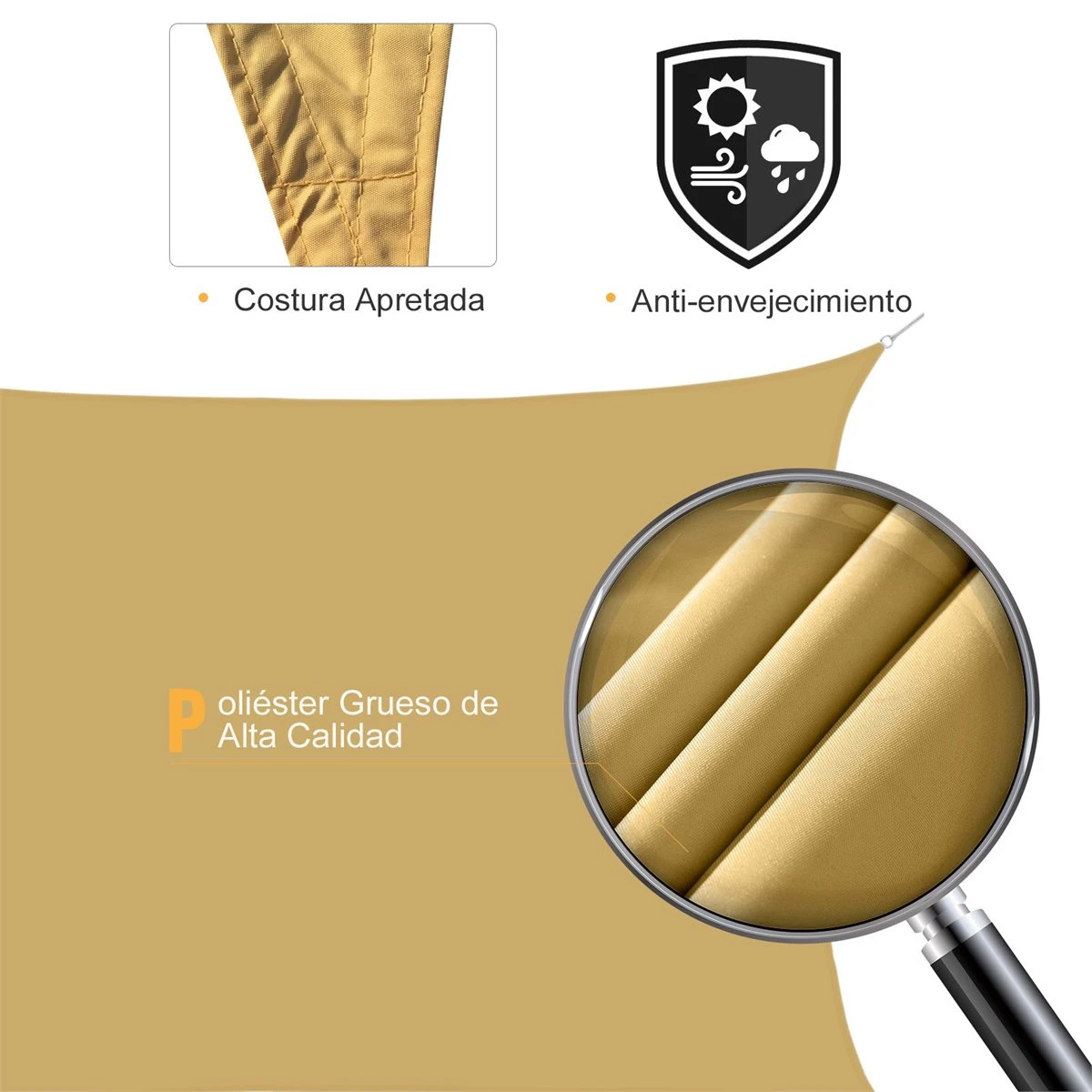 ¿Quieres protegerte del sol en tus zonas de exterior? Este toldo vela es una solución eficaz y elegante que se adapta a la mayoría de los espacios exteriores. Es discreto y fácil de montar y desmontar según tus necesidades. Ideal para el patio, la terraza, el jardín, la piscina, áreas de picnic, de juego para niños, incluso para sombrear calles o ferias. Disfruta de los espacios exteriores en primavera y verano con estas velas de sombra.