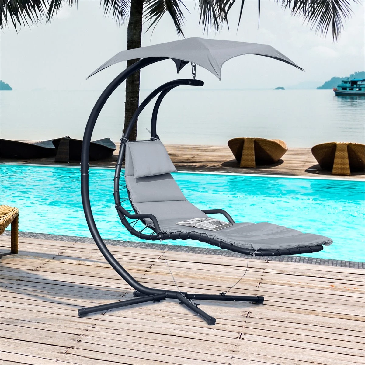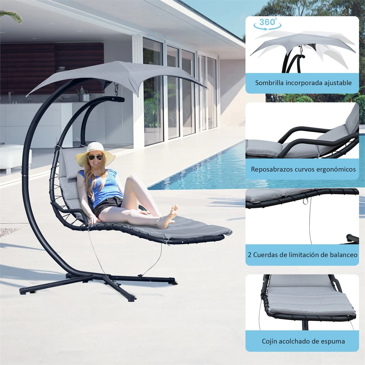 - – Tumbona suspendida con parasol ideal para tu jardín, patio o cualquier otro espacio al aire libre