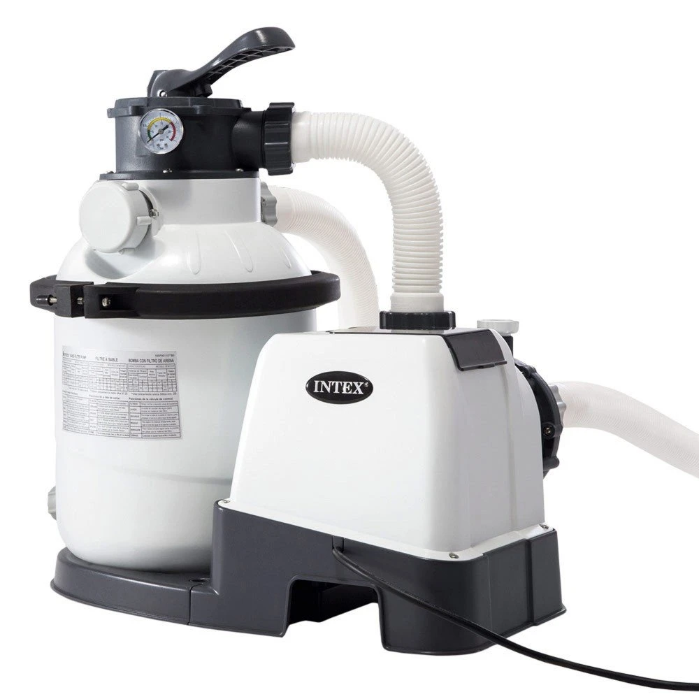 - Incluye depuradora de arena con capacidad de filtración de 4.500 l/h y conexión de 38 mm (arena no incluida, escalera de seguridad, tapiz y cobertor