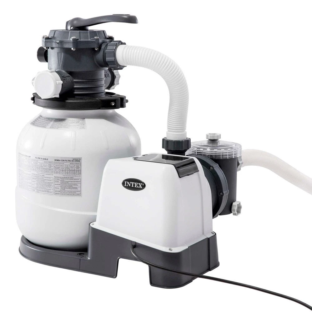 - Incluye depuradora de arena con capacidad de filtración de 7.900 l/h y conexión de 38 mm (arena no incluida, escalera de seguridad, tapiz y cobertor