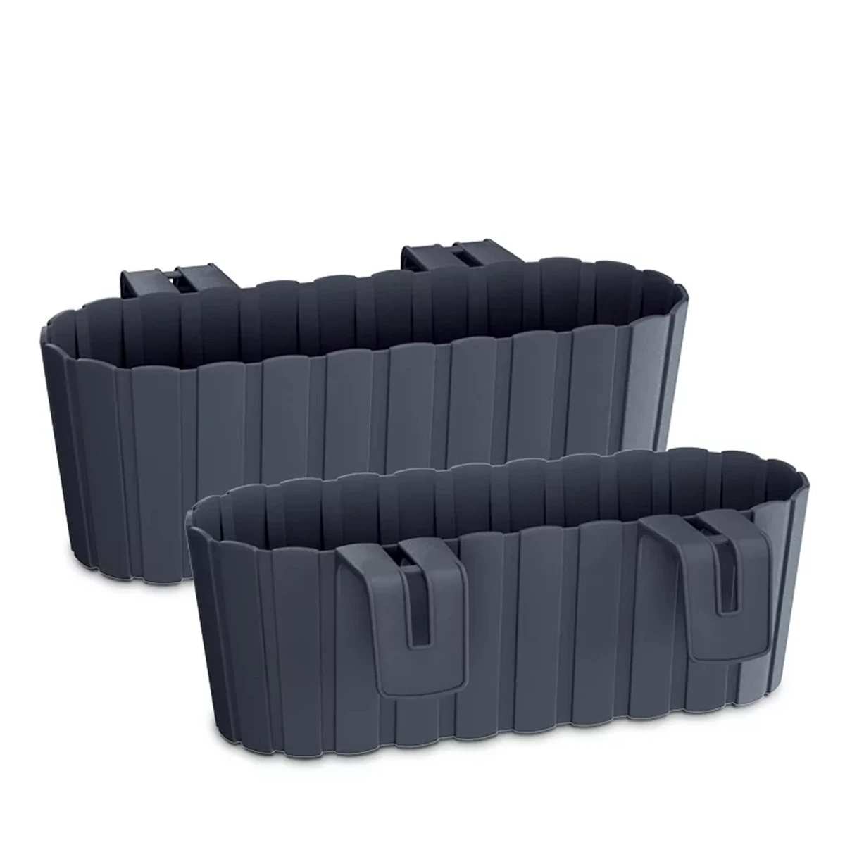 Jardinera para balcón de la colección BOARDEE HOOKDimensiones: 383x212x130AntracitaIncorpora ganchos para sujetarse firmemente a barandillas