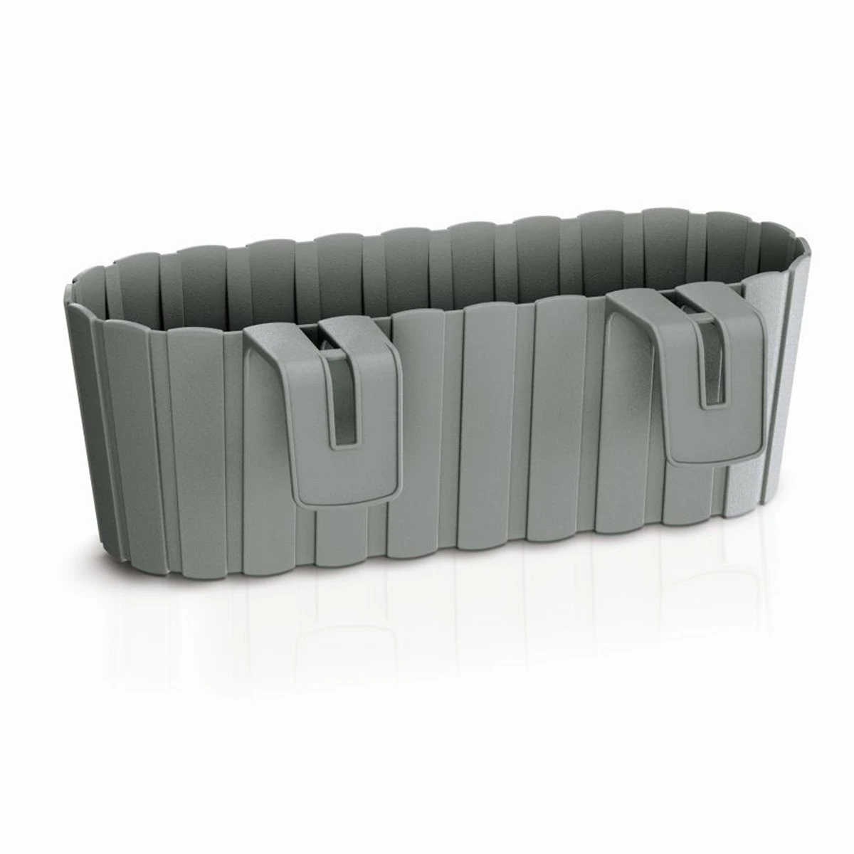 Jardinera para balcón de la colección BOARDEE HOOKDimensiones: 383x212x130Gris piedraIncorpora ganchos para sujetarse firmemente a barandillas