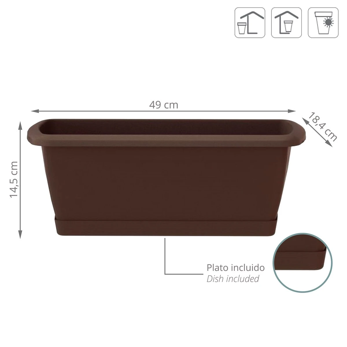Los amantes de los diseños minimalistas y atrevidos suelen buscar soluciones sencillas y originales.La colección Respana es una respuesta perfecta a estas necesidades, ya que combina funcionalidad con una línea elegante.Toda una serie de modelos y el uso polifacético de los mismos permiten crear una variedad de composiciones efectivas, convirtiéndolas en un fuerte detalle de arreglo.La serie está equipada con soportes con sistema de autobloqueo o colgantes, disponibles en una amplia gama de colores más vendidos.- Alta resistencia de la maceta a las heladas y a la intemperie.- Mano de obra con diseño de alta calidad.- Soporte / Plato incluido.- Fácil de limpiar. Dimensiones: 78,6 (largo x 18,4 (ancho x 14,5 (alto cm.