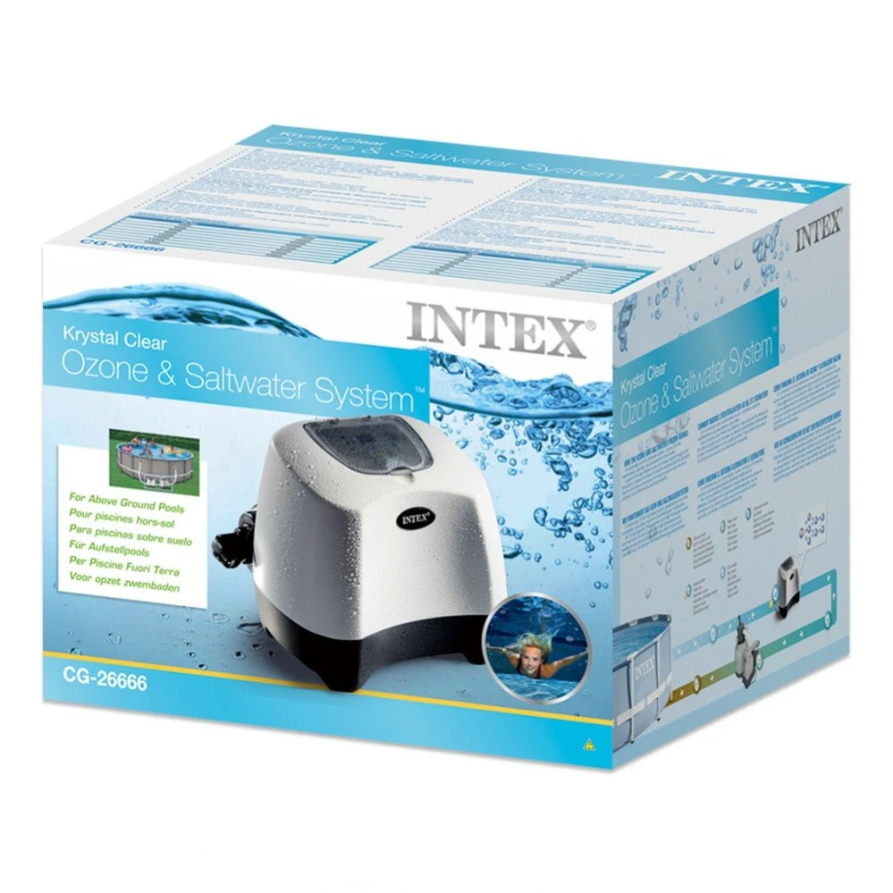 - Sistema generador de Ozono (150 ml/h y clorador salino (11 g/h INTEX, compatible con depuradoras de capacidad de filtración entre 5.678 y 15.140 l/h