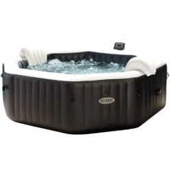 - Spa hinchable octogonal INTEX con capacidad para 6 personas y 1.098 litros de agua, medidas Ø218 cm y 71 cm de altura