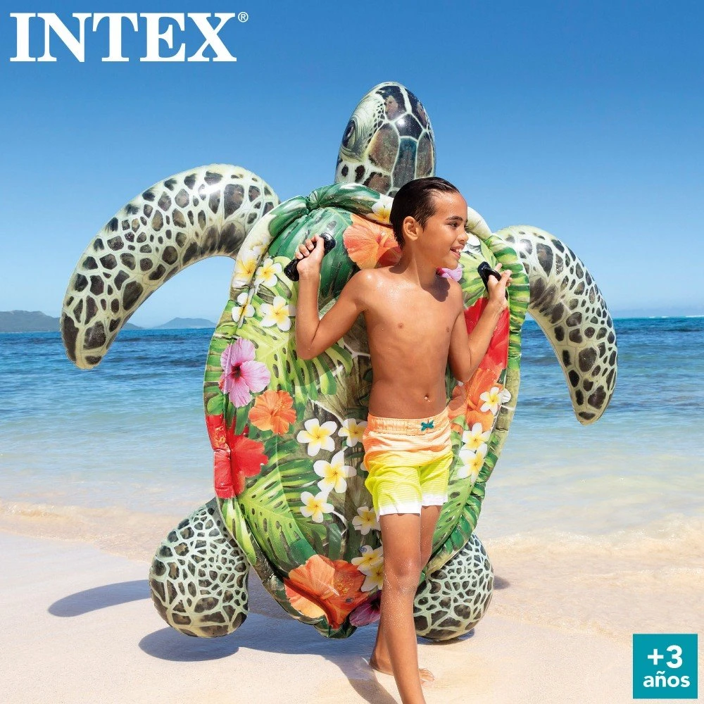 Increíble tortuga hinchable INTEX. Gracias a su impresión con diseño fotorrealista ¡Parece de verdad! Tiene una medida de 191x170x38 cm, esta pensada para el uso de 2 personas y soporta un peso máximo de 80 kg. Además, incorpora dos asas de sujeción para una mayor estabilidad y seguridad. Está recomendada a partir de3 años. Este verano todos querrán tener esta espectacular colchoneta.